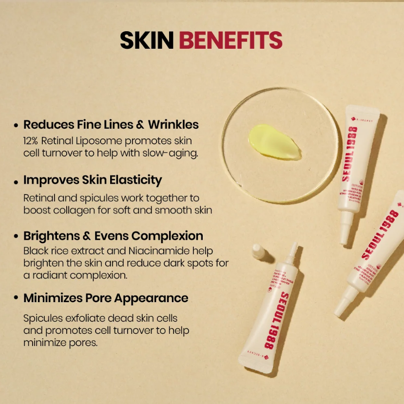 Formulated with 12% Retinal Liposome and black rice, this advanced anti-aging cream helps reduce fine lines and improve skin texture.